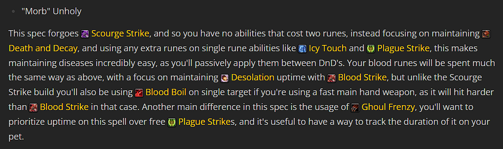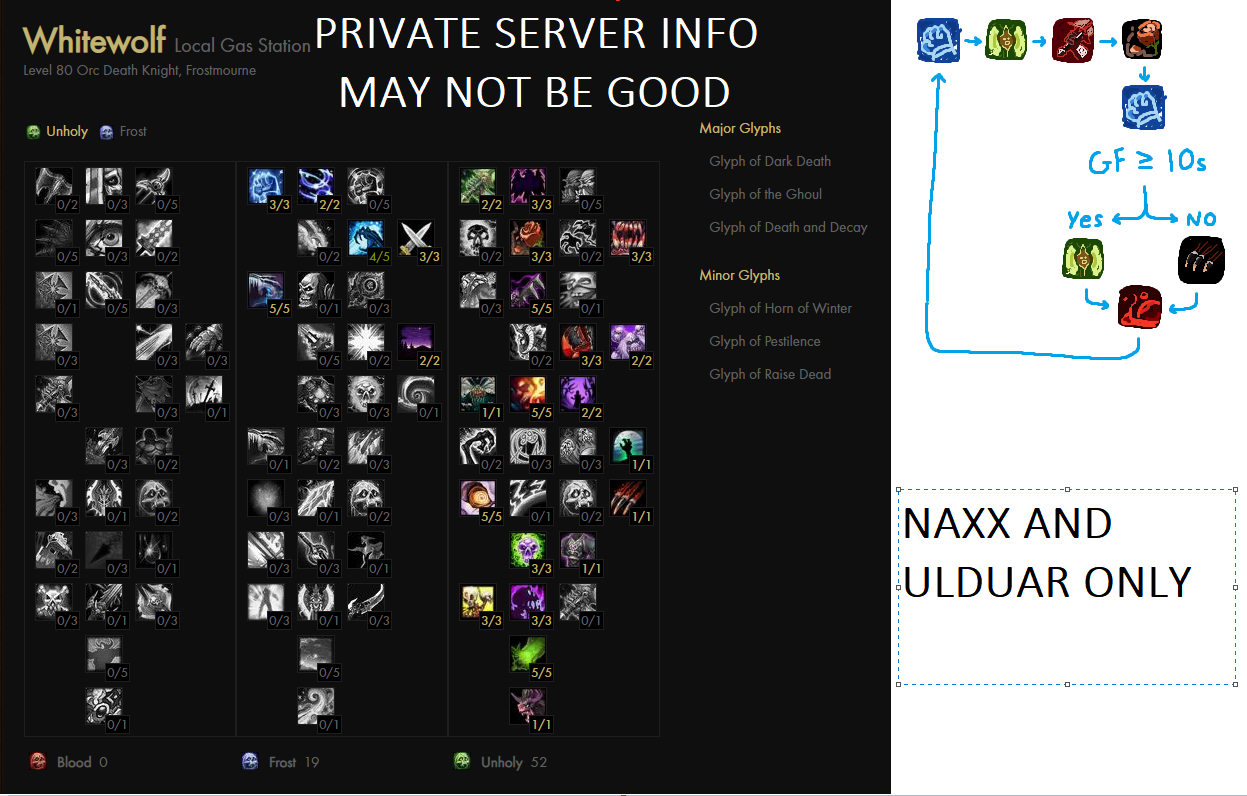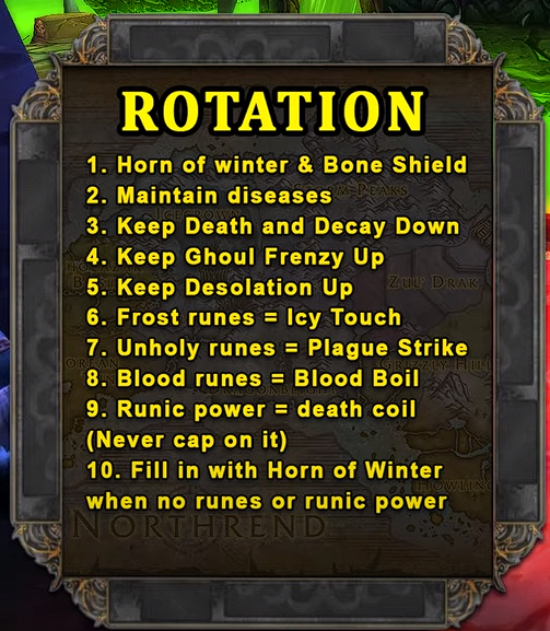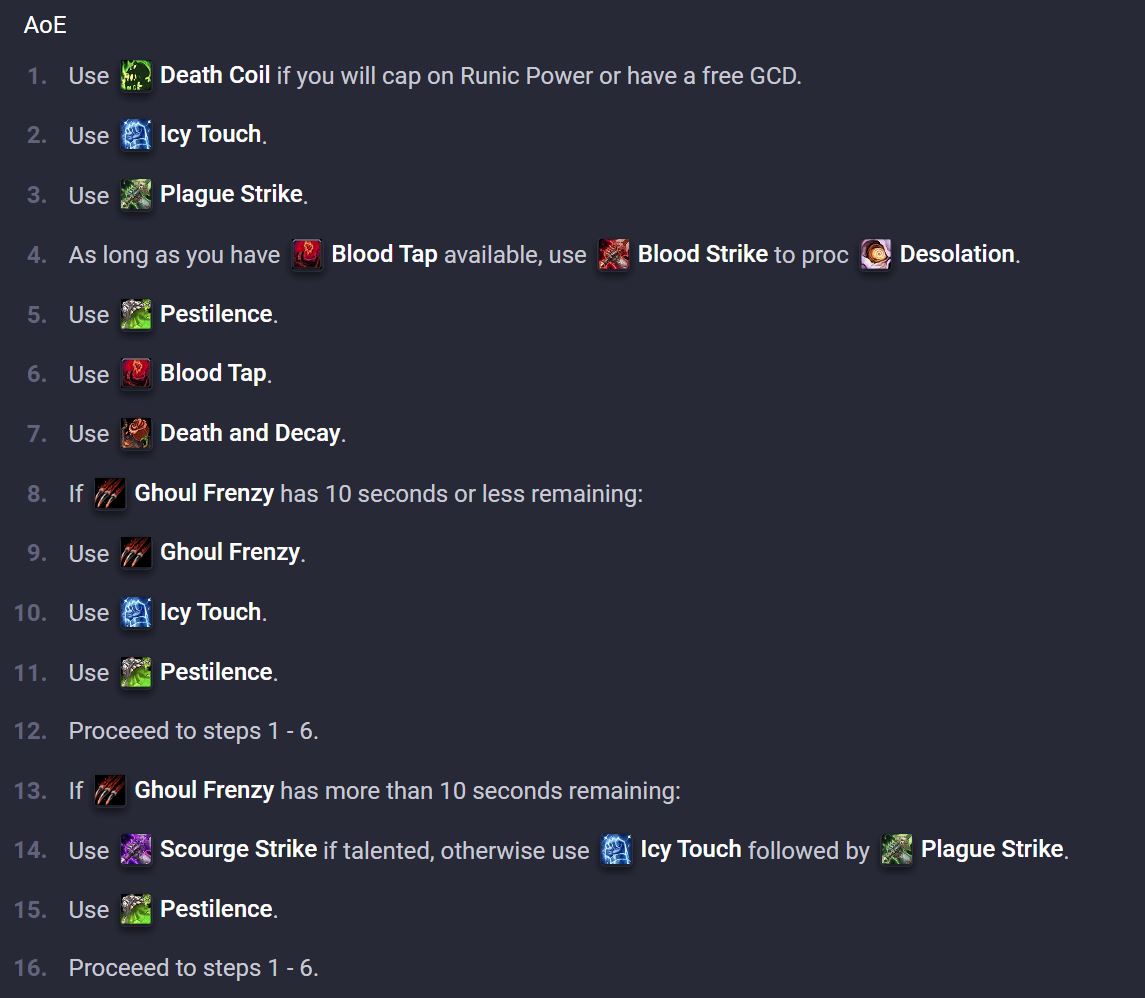 Изучив логи и стримы с этим не согласен, вы потеряете больше ДПСа не дав лужу на паке или мор, так как потратили это на 5% урона. В итоге вы получите 5% на 3 синг абилки и потеряете 10с отсутствия урона ДнД. По первому пункту тоже спорно ведь паки сейчас очень хлипкие и умирают за 10-15с от силы. 1. даётся лужа руками при начале боя, потом бафаешь себя на +5%, айс тач +чума на цели и через кровоотвод раскидываешь дебафы мором. И все дебафы бьют +5% 2. Что спорного? я написал, что нет необходимости юзать лужу на лоу хп моба, если он умрёт через 3-5 сек