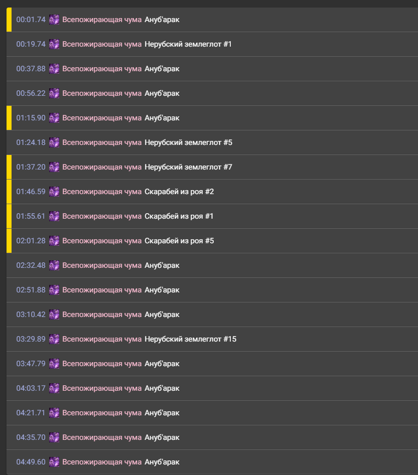 Да версия для офы. Прогнал через https://thewellnamed.github.io/ Он показал что 9 из 9 хитов у чумы. Вопрос снимается. Видимо из за маленького downtime в обычных логах рисуется полностью закрашенная линия. Остается тогда вопрос мультидотингом.