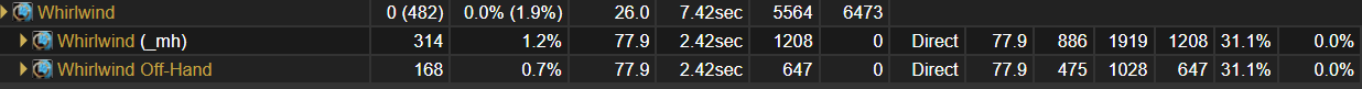Ну странно что на ст он нажимать его не хочет, а в аое ротации нажимает, или вы уже условие сделали? Может у вас манекен, быстро до экзекут фазы добрался, потому что так действительно может до вихря в ротации не доходить, c 100 до 35 %, часто есть свободные гкд в таком билде, где бы он мог нажать вихрь, но не делает этого на ст. В симе моего чара кстати в таком билде это 2 % урона почти, и интервал между кастами в среднем 7.5 сек. И с началом экзекут фазы он 0 раз нажал его, так что все использовния это до экзекут ротация. В обычном билде с яростным выпадом, то он вроде нажимает вихрь в ст (если раз в год дело до него доходит конечно). Дело значит в таланте Storm of Swords который модифицирует абилку.
