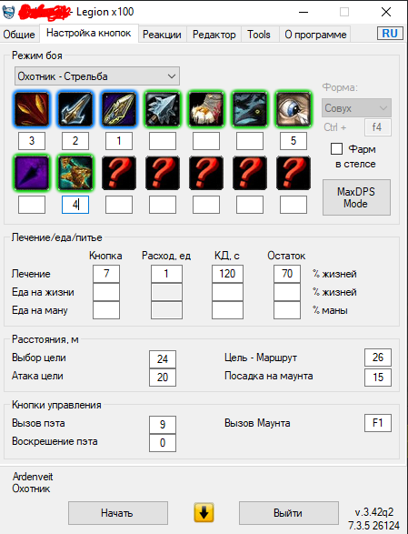 фармил ботом силу артефактов и аргунит в спеке beastmaster около недели, всё было ок. переключился на фарм ММ-ом и maxdps соответственно в bimsbote переключил на ММа - бот перестаёт работать, при старте садится на маунта, убивает пачку мобов и встаёт афк Если ничего не трогать, включить maxdps БМ-а, то фармится прекрасно. в Maxdps ММ-а настраивал и менял всё что только можно, включал и отключал каждую из кнопок, всё равно встает афк после убитых мобов