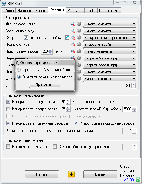 В боте есть галочка "Прождать дебаф" - он бутед стоять а кладбище и ждать пока дебаф пройдет. Рассмотрю вариант чтобы бот взлетал и ждал дебаф в воздухе.