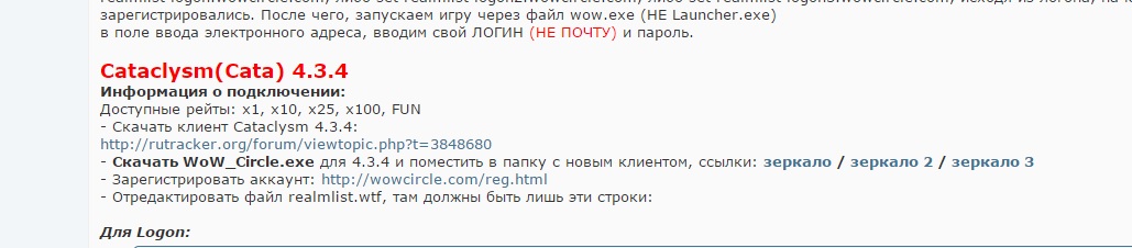 Но для катаклизма администрация сервера просит скачать фаил wow_circle и через него запускать. в корне с игрой, если запускать вов.ехе то при наборе лог\пасс он будет писать, что данные не верны пруф во вложениях