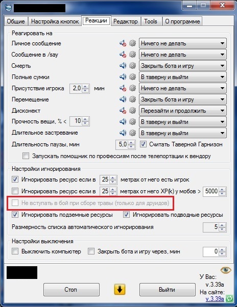 Заголовок сообщения: Re: Как можно отключить, чтоб бот не обращал внимание на моб
