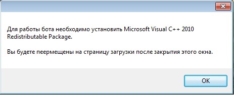 Запускаю бота выходит ошибка установите Microsoft Visual C++ 2010. Скачиваю устанавливаю. далее