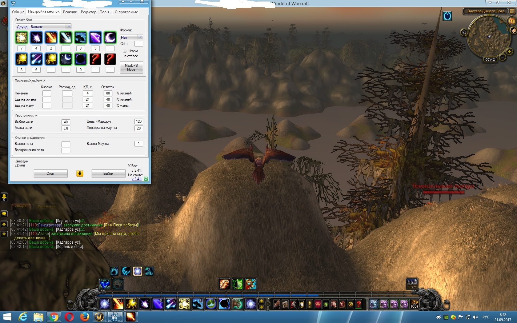 бот друидом в сове не бьёт кастами напавших мобов ни в форме совы ни без формы - бьёт посохом.