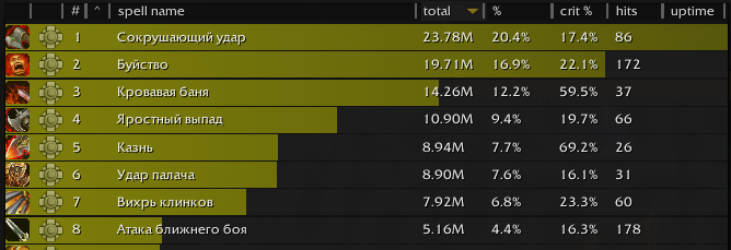 Почекал логи, казнь у людей наносит топ3 урон. надо прям СИЛЬНО апать приоритет. бот нажал 4 раза, а в логах у людей по 25-35 раз. Прогнал ротацию симкрафта. бот использует казнь !сразу! после получения бафа и при наличии 3х стаков дебафа на боссе