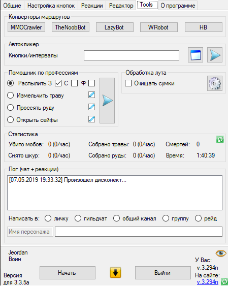 MrSergey писал(а): Вполне вероятно, что админы Warmane нашли способ детектить бимса... В этом случае ботить бимсом там нельзя... У вас есть знакомые ботоводы, которые ботят на этом же сервере на бимсе? Если да, то как у них дела с банами обстоят? В данный момент не знаю никого. Был один парень, он перестал ботить как раз перед этой закруткой, недели за две до этого, так что бех понятия. Я пытаюсь найти, кто ботит на бимсе, но у людей другие боты(определяю по перемещениям и застреванию) Исходя из вчерашнего теста, бан прилетел очень быстро, так как маршрут был точно от точки к точке, без застреваний и остановок. И ,видимо, бан прилетел за перемещение. Я сегодня еще проверю, будет ли все ок, если бот просто будет лупить манекен, стоя на месте P.S. Не дерется с манекеном, выходит из боя. не могу проверить