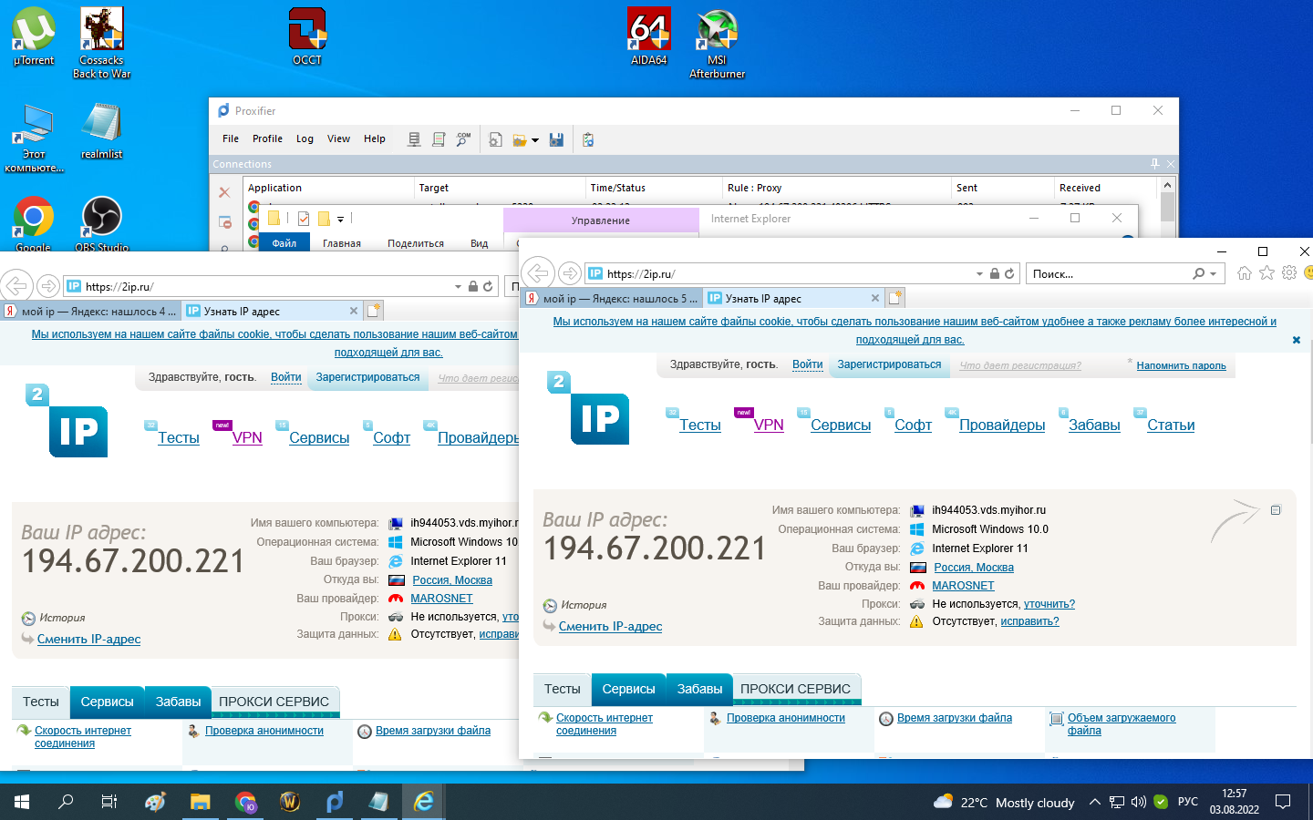 Скажи пожалуйста, а как проверить, что у каждого окна действительно свой iр? Посмотреть в программе (как на фото)
