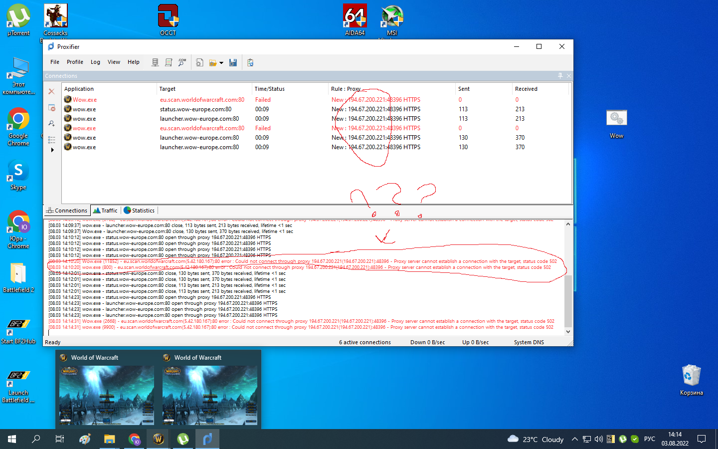 почти все браузеры открываются через browser.exe, а не по названию красное - нет подключения, потому что это старый официальный сайт, а ты на пиратке, вот и не подключается. это нормально и так должно быть делай разные прокси не для одного wow.exe, а для wow_1.exe wow_2.exe и тд под каждого свой ip наслаждайся