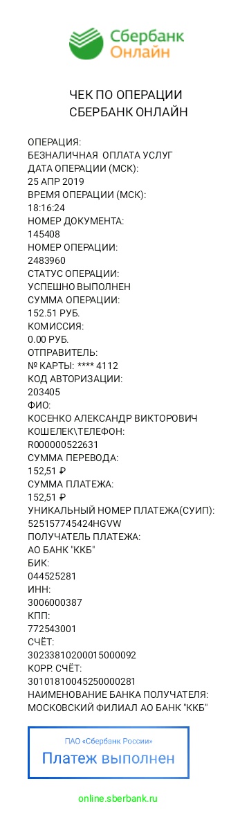 Оплачивал со СбербанкОнлайн, история имеется, чек оплаты/реквизиты/сумма полностью сохранены, готов предоставить по первому требованию.