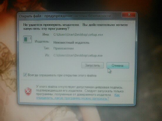 Комментарий к файлу: При нажати запуска установки.