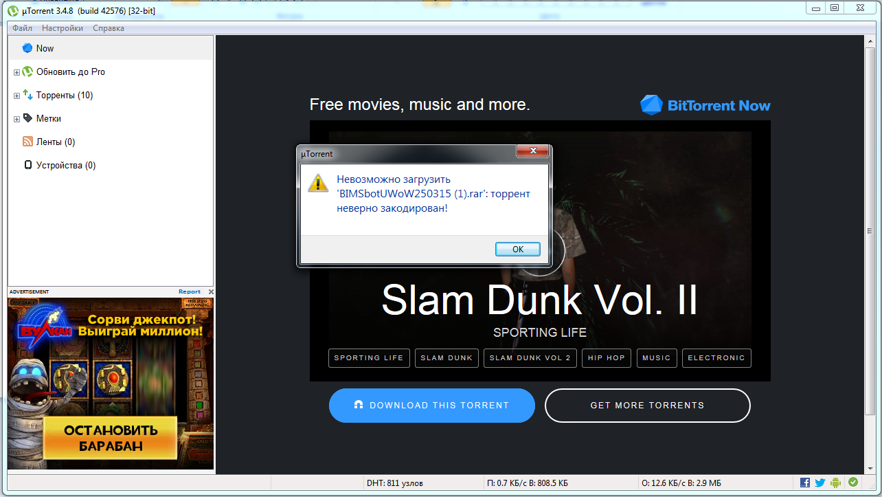 Комментарий к файлу: Выскакивает такая ошибка. Так же стоит самая последняя версия торрента.