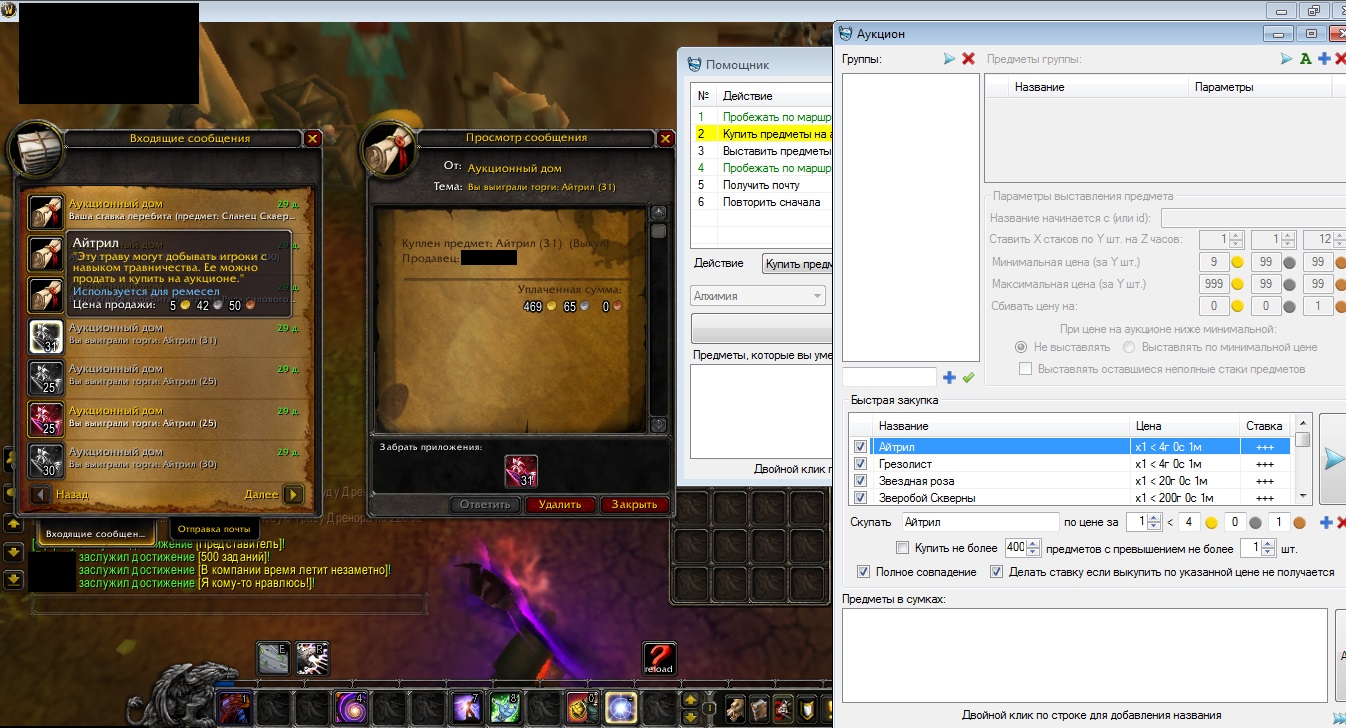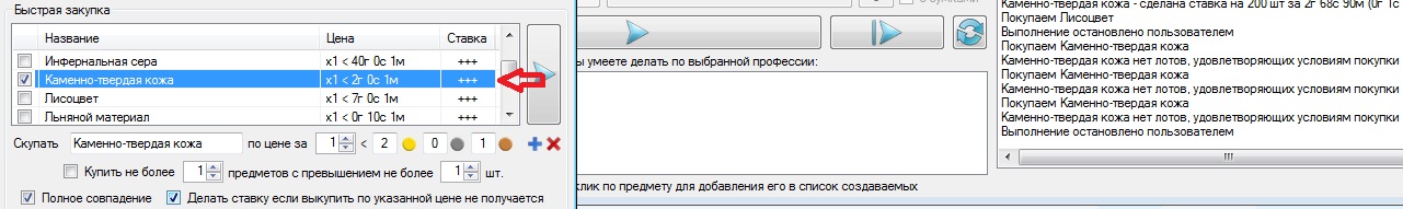 Запускаю бота - и он скупает все как положено. Все что дешевле установленных рамок.