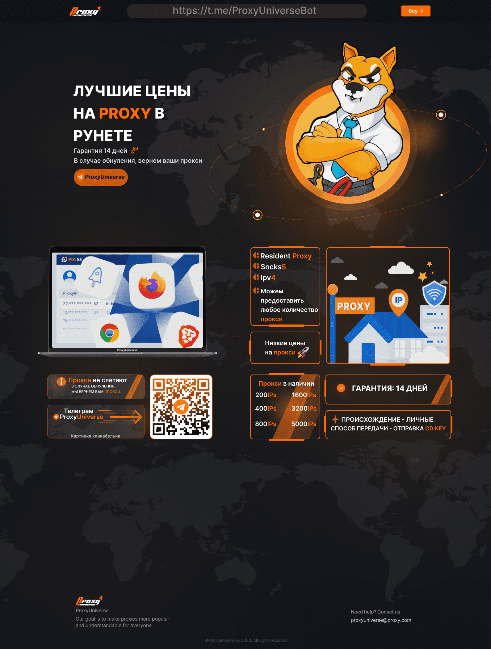 Добавлена система реферальных вознаграждений. Получайте бонусы за своих друзей! Делитесь своей реферальной ссылкой с другом, и получай 4% с его покупок себе на баланс магазина! С любовью, ProxyUniverse