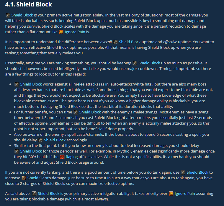 if InMelee and not ShieldBlockBuff and ShieldBlockCharges > (SaveOneShieldBlock and 1 or 0) and not (LastStandBuff and BolsterTalent) and spellReadyAfter("Shield Slam") < 0.5 then