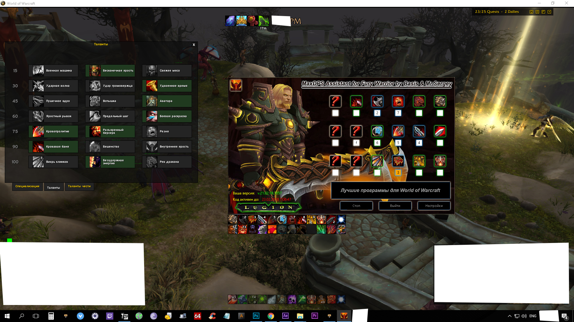 А если проставить все, подсвеченные зеленым абилки? 21 сет заточен под буйство и правильное сочетание его с кровавой баней и боевым криком. Если вы задаете вопросы по типу "почему у меня программа не дамажит", при этом не задействовав в ней основные для вашего обвеса абилки, то подозреваю, что вы не совсем понимаете принципов работы фурика и, следовательно, бурсты руками жмете не совсем тогда, когда эо даст максимальную отдачу...