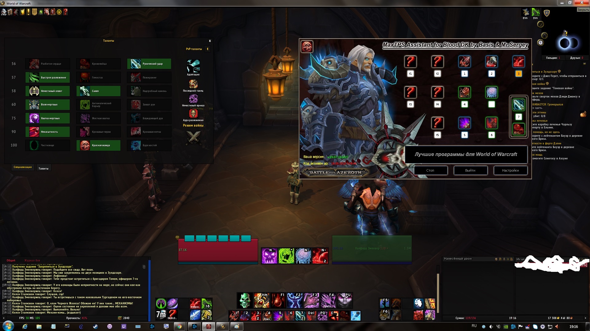 Сергей, сделайте что-нибудь со Вскипанием крови. Стаки реально засаливаются, даже при взятом таланте Гемостаз! Тут еще вопрос по простою, при 100% хп не жмет Удар смерти бывает.