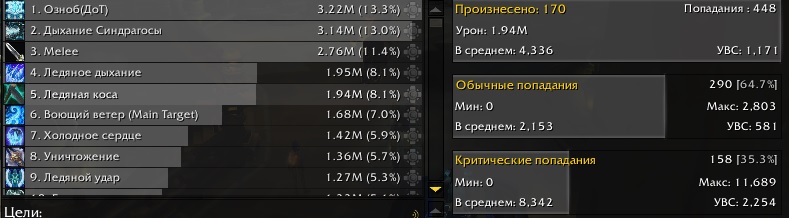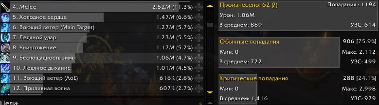 2. Хотел бы поговорить по поводу ротации без дыхания, та же самая проблема как и с дыханием было, когда куча мобов, он больше прожимает уничтожение чем косу, также прошу сделайте как и под дыхание, чтоб если 2+ моба бил косой, соло моб, только уничтожение. А то получается он я видел бьет уничтожением, как уничтожение в КД он побил немного косой, и так все время, ну и опять же не забудьте чтоб беспощадность зимы так же сдавалось под 2+ моба в приоритете. Потому что если будет задействована коса, то однозначно будет пак, ну и соответственно беспощадность зимы то же требуется сразу в высоком приоритете кастовать. Получается условие такое что, если идет каст косы, значит беспощадность зимы подымается в приоритете по кастам, если каст уничтожение в соло цель, то оставляем как вы сделали под соло таргет ротацию.