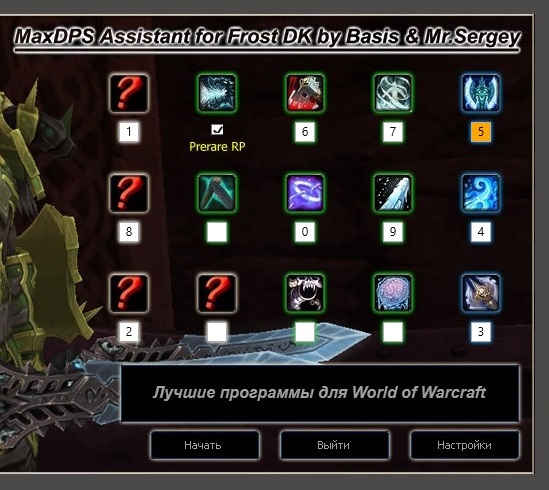 Както-то много у вас фростстрайков и мало синдрагосы... Такое впечатление, что синдрагоса придерживалась очень долго... Попробуйте без галочки RP prepare - в этом случае для использования синдрагосы нужно будет ставить программу на паузу и добирать РП руками, но зато не будет работы программы в "зажатом" режиме когда синдрагосса доступна, но пока вам не нужна.