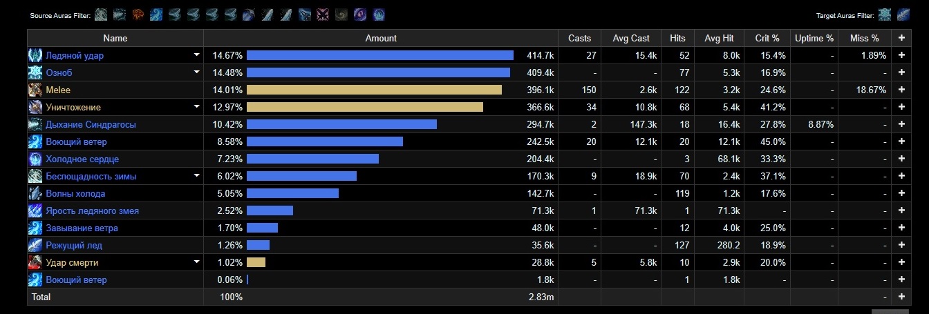 Слишком мало висело дыхание синдрагосы (по Вашим данным 8 сек. примерно), а должно быть 15+ секунд - хорошо, 20+ секунд - отлично. Синдрагоса должна быть на 1 месте по урону.