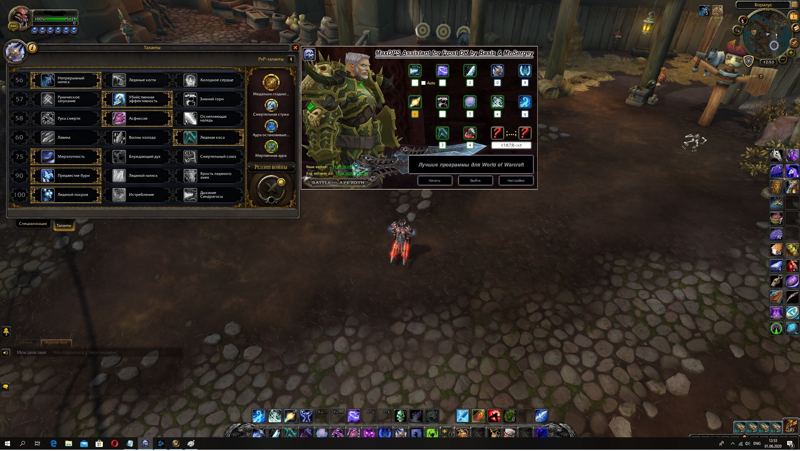 В связи с необходимостью корректировки ротации для ФДК, а так же специфики использования Дыхания Синдрагосы решил сделать тестовую версию, в которой можно "давать задание" на использование дыхания в нужные моменты. Принцип такой - программа работает по своей стандартной ротации, ничего не копит. Когда вам нужна синдрагоса вы прожимаете предварительно созданный макрос, и программа начинает накапливать РП и руны для ее применения. Как только все необходимое накоплено, синдрагоса используется программой. Применять макрос необходимо только если до отката синдрагосы менее 15 секунд (ну или если она уже не на кд). Использовать макрос необходимо перед каждым использованием синдрагосы. Макрос для активации имеет вид: где вместо xy нужно подставить первые 2 буквы из названия аддона MaxDPS. Например, если аддон у вас называется Kuenizaf, то макрос будет иметь вид Так же макрос (уже с учетом имени аддона) можно посмотреть во всплывающей подсказке к галочке Auto. Просьба протестировать удобство использования нововведения, если оно зайдет, то переделаю все программы для возможности ручного контроля бурстов, а так же сделаю возможность ручного включения/отключения аое режима... Собственно, сама программа для теста - http://www.bimsbot.ru/maxtests/Vatusupec.zipP.s. ротация в программе так же уже подкорректирована.