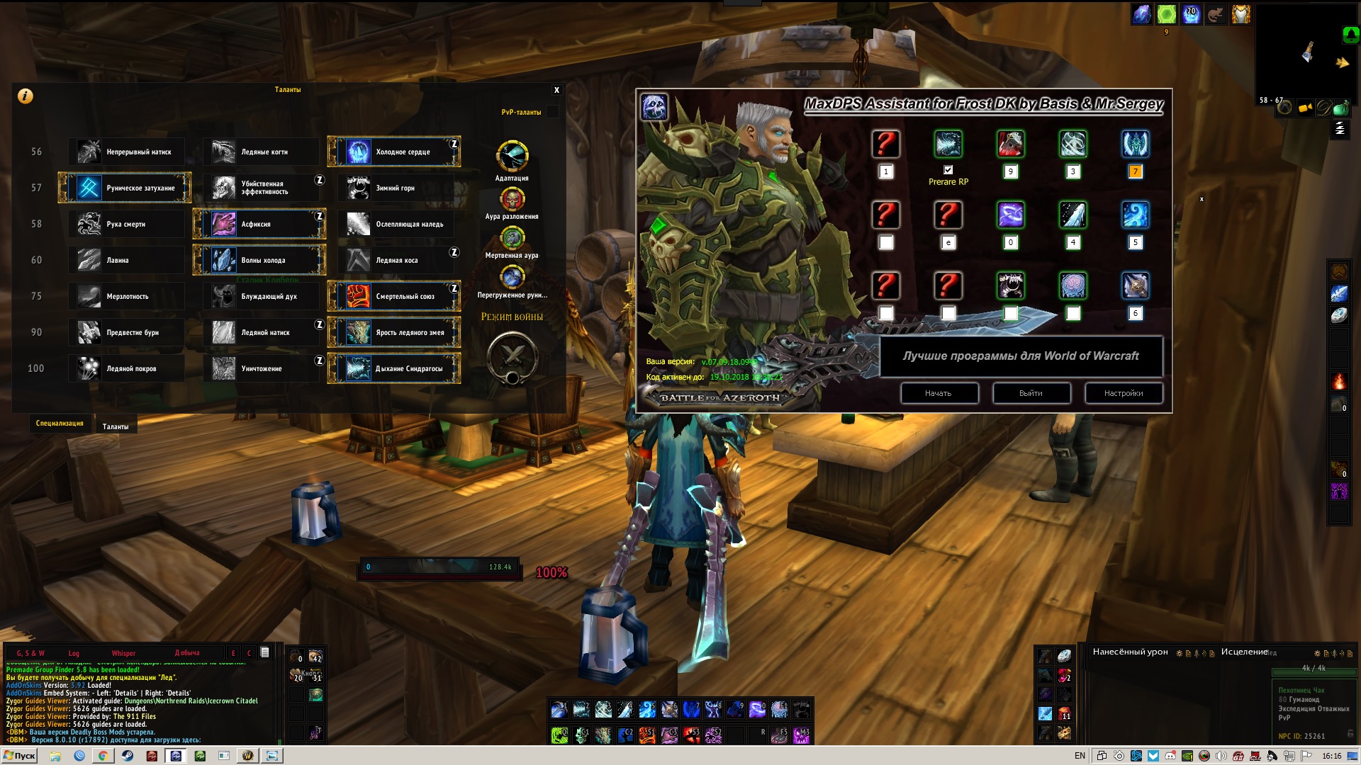 MrSergey писал(а): https://www.icy-veins.com/wow/frost-death-knight-pve-dps-guide Добрый день, скажите пожалуйста когда вы сможете починить ротацию в программе ? Так как я протестировал ее и в мифик и в рейде гер, у меня одно разочарование. Так как если отсутствует талант предвестие бури, то вся ротация намертво умирает, так же галочка в программе возле дыхания синдрагосы, так же не корректно работает, он набирает 50 рун, а то и меньше, и ждет когда я буду прожимать дыхание, когда это полный абсурд, и дыхание надо прожимать на 90+ а бывали вообще дикие моменты что нет рун, но готова способность, и он ждет чтоб я прожал. И я очень прощу пожалуйста добавьте в ротацию беспощадность зимы, когда не взят талант предвестие бури, потому что предвестие бури проигрывает ярость ледяного дракона по дпс, и сейчас все данжи и рейды завязаны на АОЕ, а брать талант предвестие бури заместо ярость ледяного дракона, ни кто умным не назовет. Прощу пожалуйста пересмотрите, и почините эти моменты. P.S. Если ставить в знак вопроса абилку, она не всегда срабатывает, приходится по 2 а то и 3 раза жать на скилл, из за этого опять же бот останавливает ротацию.