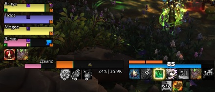 4. Если активирован режим обхотывания и у Цели более 55 / 70% (не танк / танк), то вешаем Омоложение на всех членов группы, процент жизней которых менее 85% (90% если Мучительный аффикс)