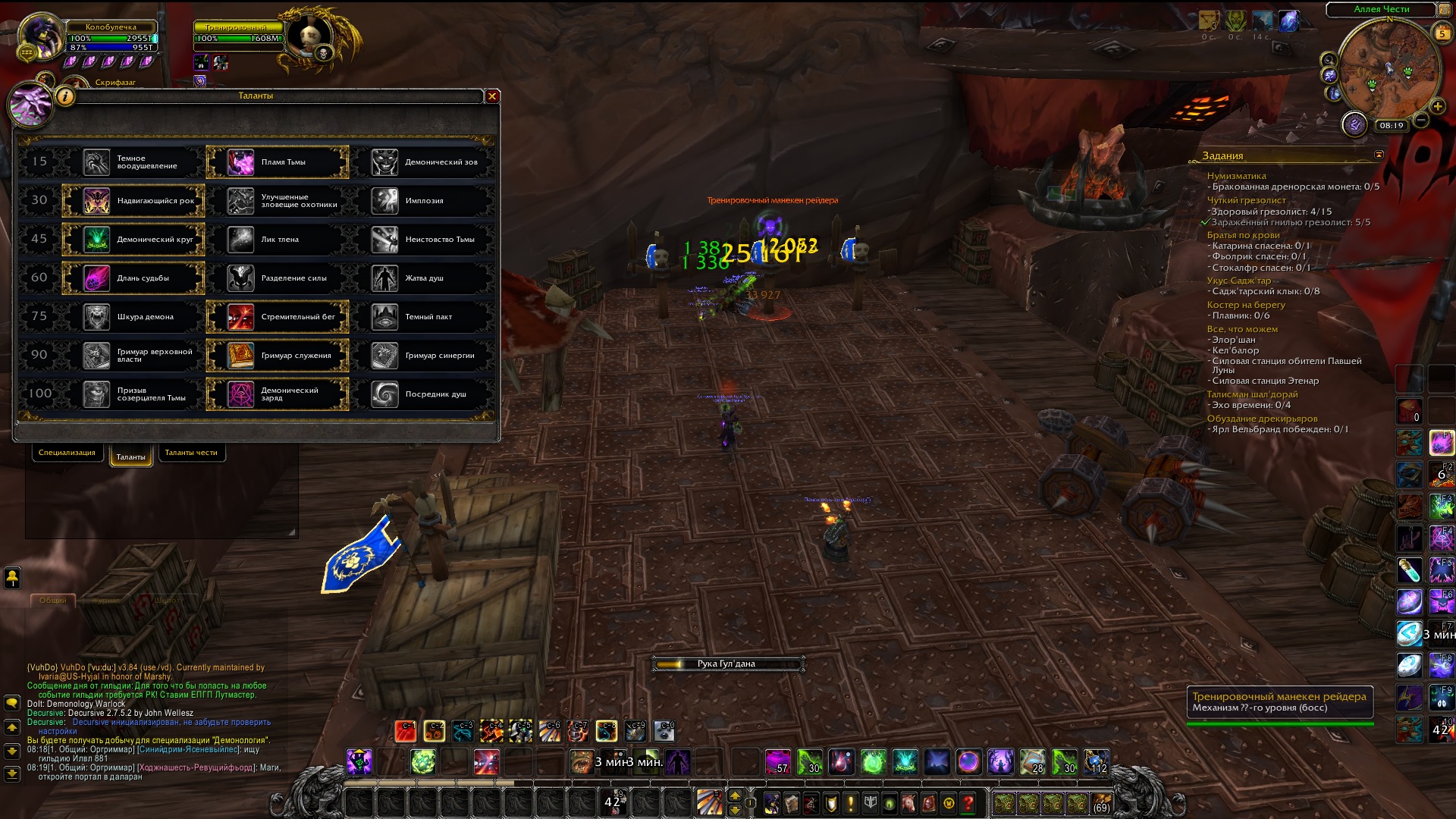 только что перенесла, ничего( я начинаю бой кастом "Рука Гулдана", он пропускает Демонический заряд, используя "Демоническое усиление", "Призыв охотников", "Рок" и так далее с простоем в ротации, минуя Заряд