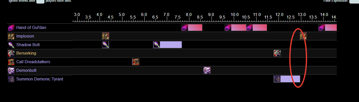 Вы видимо не поняли вопрос... На данный момент ротация примерно такая - вызываем всю свою утварь - вызываем тирана, который эту утварь усиливает. Вопрос в том, нужно ли во время действия тирана сливать бесов на имплозию или нет.