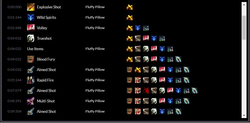Добрый день ,у меня такая проблема ,разбирал логи и заметил что очень часто прерываются "Прицельный" и "верный" ,сначало думал может я сам отвернулся или побежал ,но проверил на зимоксе в мифике , с пула пока стоял смотрел на касты и действительно в самом конце на последних 0.1 секунде он отменяется .проверил итог на лог аналайзере ,прерываются!