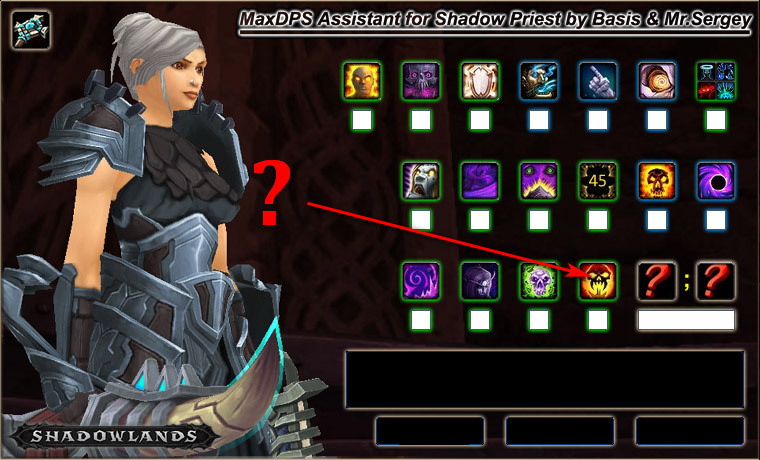 Хотелось включить в ротацию ассистента для ДЦ "Слово тьмы: Смерть". Понимаю что там есть своя механика и нужно отслеживать здоровья цели, но мне просто хочется условно убрать этот скилл с панели и не заботиться о его прожимке. Поэтому даже тупо использование "по кд" подойдет.