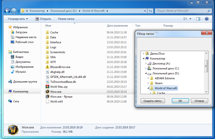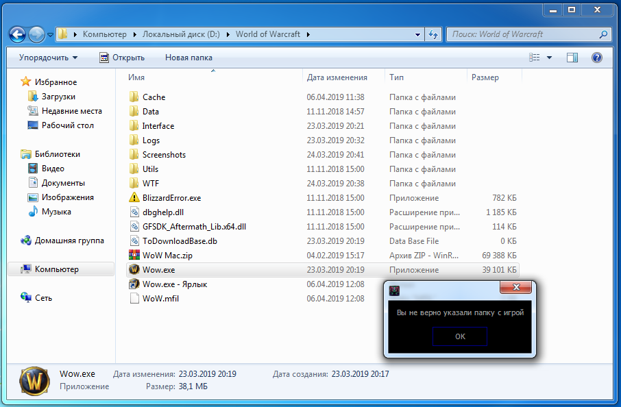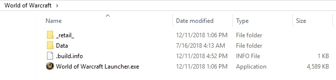 Короче говоря, сделай свой вид папки такой, как на скрине(естественно, вместо лаунчера wow.exe), если не помогло