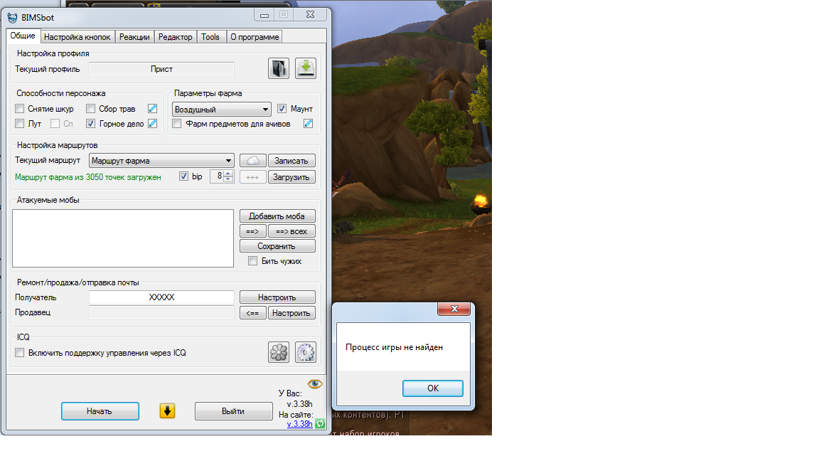 доброго времени суток. столкнулся с той же проблемой. при первом запуске бота просит указать директорию с игрой, но почему-то пишет, что игра не найдена. версия бота 3.3.5а