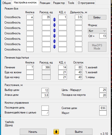Не могу понять ничего, выставил последняя цель, взаимодействие с целью, указал в назначении клавиш в меню два символа, ввел их же в настройки - не атакует вообще, заменил взаимодействие с целью в настройках просто кнопкой атаки - атакует но не лутит, иногда сам нажимает выход из игры просто так, иногда начинает брать и сбрасывать таргет до бесконечности пытаясь почему то прожать лобовую атаку скилл который вообще в настройках не указан.