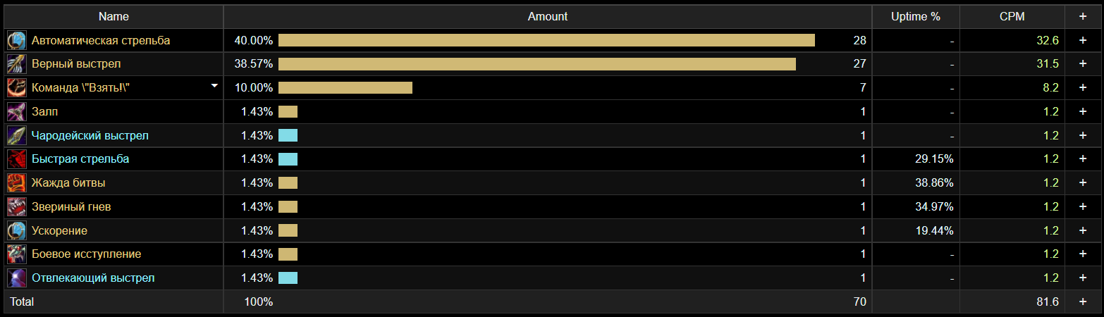 - SPELL_CAST_START следующей абилки может быть равен SPELL_CAST_SUCCESS предыдущей, НО только если это не мгновенка после стеди шота - мгновенка после стедика начинает кастоваться только спустя 0,1-0,25 сек.